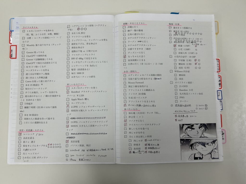 仕事や美容、買いたいもの、等で大まかに分けて